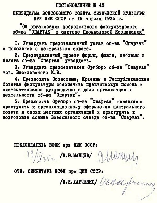 Созданное 19 апреля 1935 года по инициативе первого секретаря ЦК ВЛКСМ Александра Васильевича Косарева и братьев Старостиных спортивное общество «Спартак» прошло трудный, но интересный и яркий путь, с первых шагов заняв прочное место в системе советского физкультурного движения.